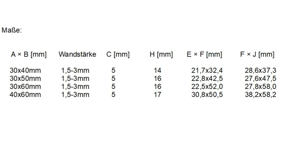 Rechteckig, passend für standardisierte Profile, in verschiedenen Größen erhältlich.